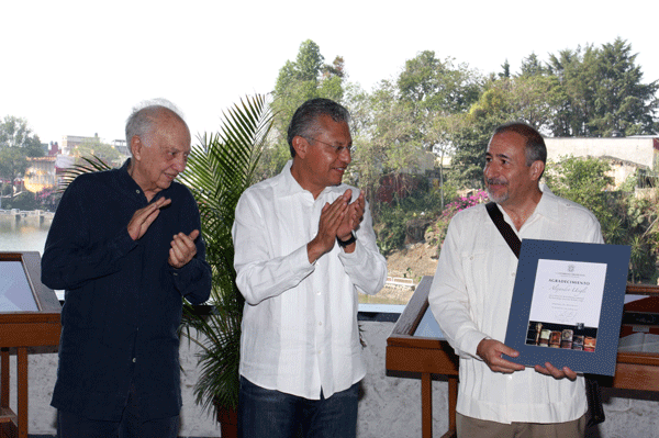 El escritor Sergio Pitol fue testigo de la entrega del agradecimiento que entregó