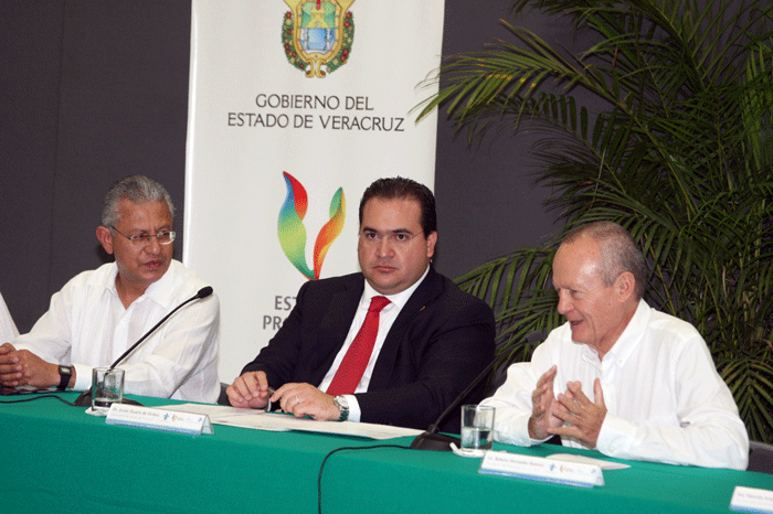 El rector Raúl Arias, el gobernador Javier Duarte y el presidente del Patronato Pro UV, Roberto Hernández |