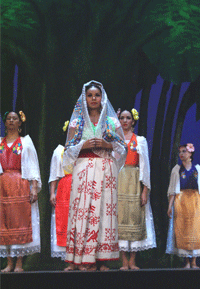 Se apagan las luces y las integrantes del ballet toman el escenario equilibrando una veladora encendida en la cabeza para bailar La Bruja; la precisión de sus movimientos, su coordinación al unísono y la bella estampa que presentan, detona nuevamente el aplauso generoso del público asistente.
