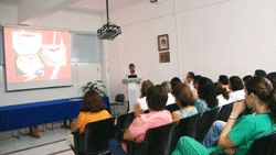 La plática fue dirigida a todos los profesionales del área de la salud y se llevó a cabo en el audiovisual de la Facultad de Nutrición, donde se instó a los profesionales a que difundan entre la población el cuidado de su salud bucal, que además de acudir al dentista y lavarse los dientes observen si aparecen lesiones blancas o placas rojas, úlceras sangrantes, fuegos y toda situación que tarde más de dos semanas en sanar.