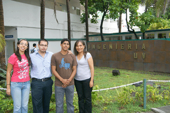 Los alumnos de la UV Levi Evaristo Chávez Mojica, Mario César Ballesteros Escobar y Carolina Bobadilla Méndez así como estudiantes del Instituto Tecnológico de Veracruz y la Universidad Cristóbal Colón, trabajaron durante el verano para lograr la mejora de la planta de GE.