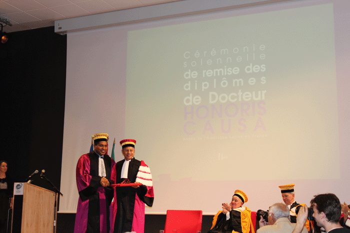 el pergamino que lo acredita como miembro destacado del claustro académico de la institución gala.