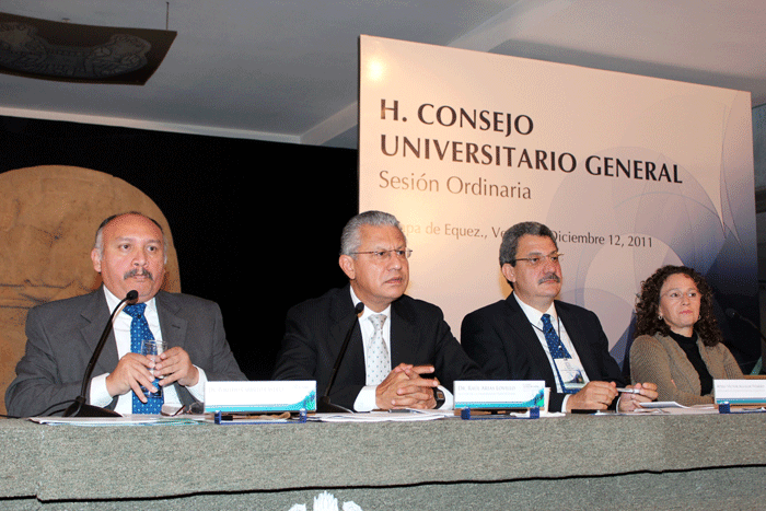 En la última sesión del Consejo Universitario General (CUG) de 2011, el Rector hizo un nuevo llamado al compromiso de los universitarios para con su casa de estudios y nuevamente se refirió al desigual esquema de financiamiento para la educación superior pública del país.