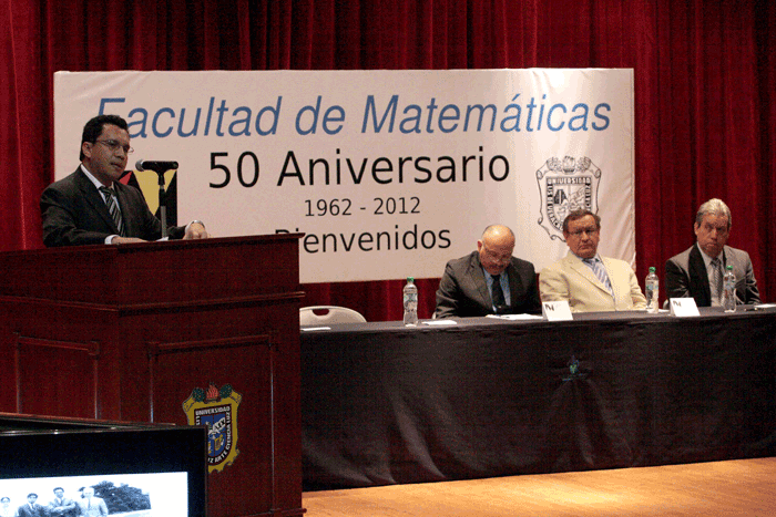 Investigadores de la Universidad Veracruzana (UV) y de otras instituciones de educación superior de México, entre ellos José Carlos Gómez Larrañaga y María Emilia Caballero Acosta, ambos de la Facultad de Ciencias de la Universidad Nacional Autónoma de México (UNAM), se unieron a los festejos de los 50 años de la Facultad de Matemáticas de esta casa de estudios.