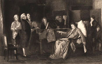 La salud de Mozart empeoró rápidamente. De acuerdo con el testimonio de su cuñada Sophie, el compositor tenía la idea de que trabajaba la música para su propio funeral. El 4 de diciembre, aprovechando una leve y momentánea mejoría, interpretó con unos amigos los fragmentos del Réquiem que había terminado. Sólo llegaron hasta Lacrimosa. A la una de la madrugada, Mozart estaba muerto. |