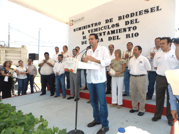 El alcalde Salvador Manzur Díaz expresó su agradecimiento a la UV por el apoyo que brindan para mejorar la sustentabilidad de la ciudad, ya que el biodiesel es generado a partir del aceite quemado que desechan los restauranteros.