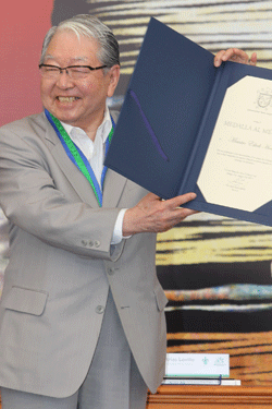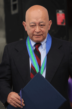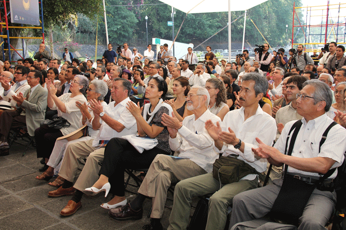 Enseguida, se dirigió a cada uno de los homenajeados y expresó los motivos de tal reconocimiento: a Eikoh Hosoe, por el legado artístico dejado al mundo; a Francisco González-Crussí, por sus investigaciones y sus excelentes libros Breve historia de la medicina y Tripas llevan corazón, editados por la UV; a Gilberto Aceves, por su contribución a la formación de la Facultad de Artes Plásticas.