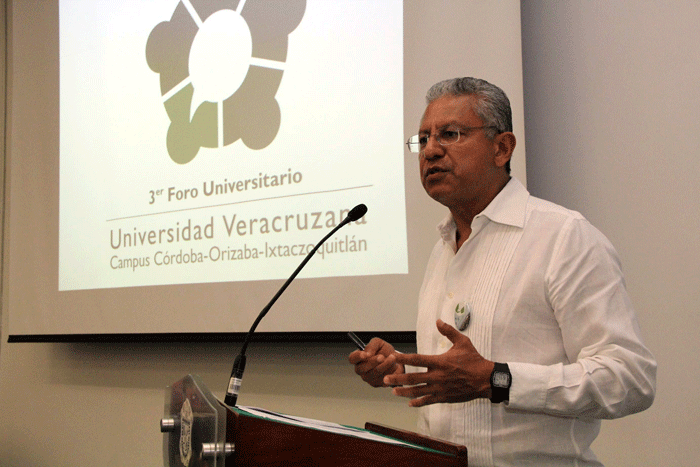 Raúl Arias encabezó los trabajos del Foro y en su mensaje aseguró que la celebración de éste, reafirma la vocación académica y el compromiso social que la máxima casa de estudios tiene con Veracruz.