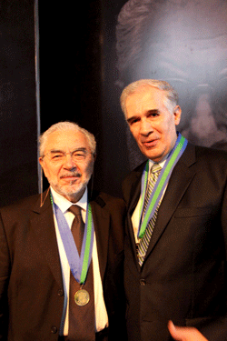 Después de recibir el Doctorado Honoris Causa por la Universidad Veracruzana (UV), entregado por el rector Raúl Arias Lovillo, en sesión solemne del Consejo Universitario General, Diego Valadés Ríos y Sergio García Ramírez, juristas reconocidos a nivel internacional, señalaron en sus respectivas conferencias algunas estrategias que el país debiera optar para hacer frente a la violencia. |
