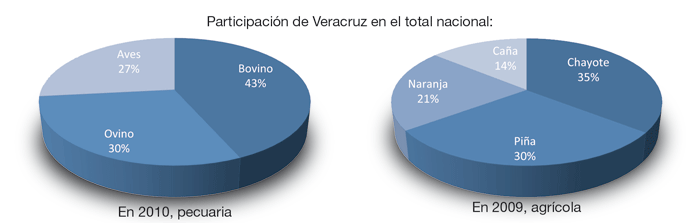 Esta fe en el campo es lo que permite a Veracruz ubicarse como sexta economía del país, de acuerdo con el Instituto Nacional de Estadística, Geografía e Informática (INEGI), por su contribución en producción de agua y suministro de gas con 10.2 por ciento (primer lugar nacional en producción de electricidad); en agricultura, ganadería, aprovechamiento forestal, pesca y caza aporta 7.5 por ciento; en servicios educativos contribuye con 6.1 y en el sector de la construcción con 7.9, porcentaje que lo ubica en el cuarto lugar a nivel país. Incluso, en servicios inmobiliarios y de alquiler de bienes muebles e intangibles está situado en el quinto lugar de todo México con seis por ciento.