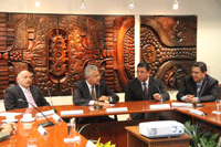 En la reunión de trabajo también participaron Ramón Flores Lozano y Guillermo de León Adams, asesores de la Rectoría; Guillermo Fox Rivera, director de Proyectos, Construcciones y Mantenimiento; Miguel Ángel Ehrenzweig Sánchez, encargado del Proyecto de la Sala de Conciertos; Leticia Rodríguez Audirac, secretaria de la Rectoría; Víctor Aguilar Pizarro, secretario de Administración y Finanzas; Porfirio Carrillo Castilla, secretario Académico.