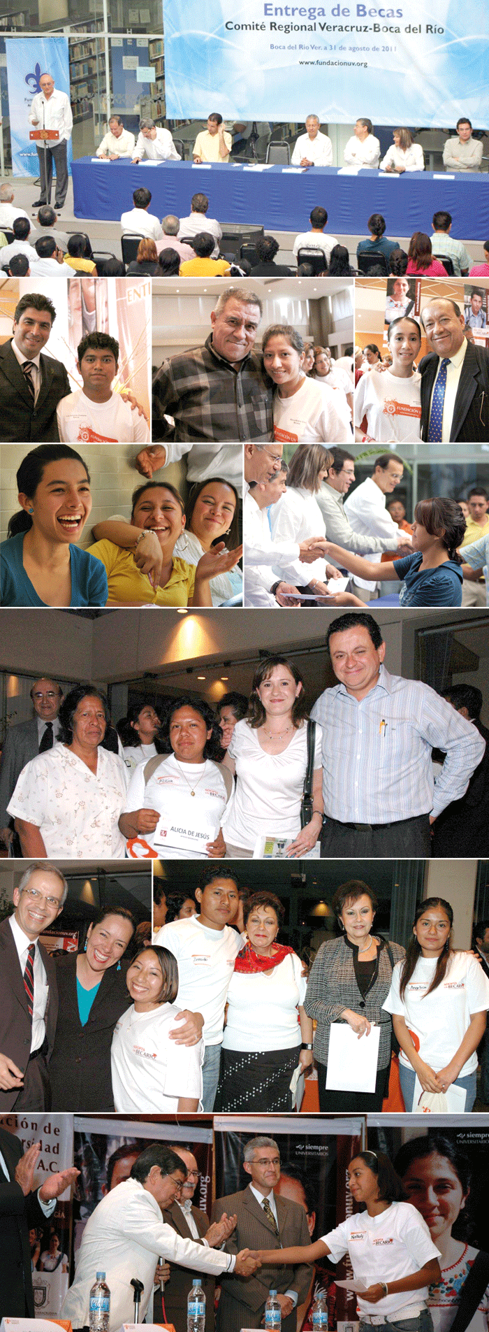“Gracias a nuestros padrinos por creer en nosotros, por este apoyo que nos ha alejado de la deserción y facilitado nuestro crecimiento académico y profesional. Ellos nos brindan una guía, un soporte; en muchos casos nos apoyan directamente, al asesorarnos y vincularnos con los sectores académico y laboral”, comentaron los becarios Raúl Martínez, Sara Arriaga, Margarita Hernández y Andrés Roldan, durante el festejo de los 20 años de la Fundación de la Universidad Veracruzana (UV).