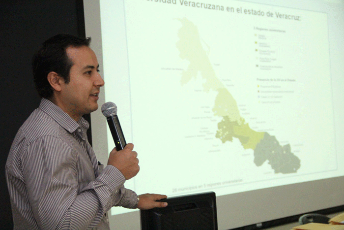A nombre de la institución, Mario Oliva Suárez, responsable de la Oficina Internacional de la DGRI, dio el mensaje de bienvenida a los estudiantes de movilidad e hizo énfasis en la vocación social de la UV “al ser una universidad orgullosamente pública”.