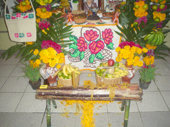 Para la tradición mexicana, la fiesta de los muertos comienza el 18 de octubre, día de San Lucas, según la religión católica, donde se celebra a los fallecidos que murieron de forma accidental, y desde la tradición indígena es el día de regreso del trueno viejo que viene por las almas de los que se ahogaron; los días 31 de octubre y 1 y 2 de noviembre continúa el festejo. La tradición está representada por tres niveles: la mesa es la tierra, que es lo que representa en realidad el altar; abajo, el inframundo y, arriba, el supramundo.