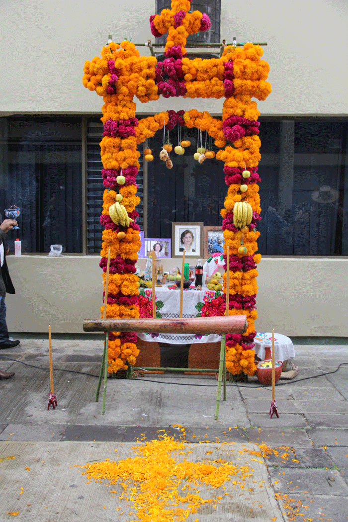La ofrenda instalada en Rectoría está inspirada en los altares para los fieles difuntos de la Huasteca veracruzana, donde se celebra el Xantolo