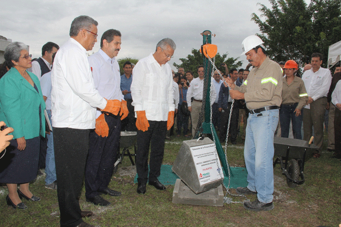 Poza Rica, Ver.- Con la presencia de autoridades universitarias, encabezadas por el rector Raúl Arias Lovillo; de Petróleos Mexicanos (Pemex), en la representación de Antonio Narváez Ramírez, y de la empresa Halliburton, con Florencio Saucedo, se colocó de manera simbólica la primera piedra de lo que será la sede del programa educativo de Ingeniería Petrolera en terrenos de la Unidad de Ciencias Químicas.