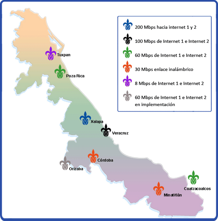 En ese tenor, detalló que la UV cuenta con una de las redes más grandes del país en materia de telecomunicaciones, con cobertura en 27 ciudades con alrededor de 13 mil nodos de red, compuesta por redes metropolitanas de fibra óptica propiedad de la institución (132.5 kilómetros) y 21 enlaces inalámbricos punto a punto, teniendo acceso a Internet I y II de 696 megabits por segundo. Adicionalmente se cuenta con una red inalámbrica con 590 puntos de acceso distribuidos en