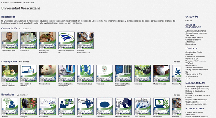 La UV incursionó por invitación de Apple en agosto de 2010 y a cuatro meses del lanzamiento del iTunes U-UV, éste se posicionó en el lugar número 22 a nivel internacional por descarga de contenidos y para junio de 2011 en el lugar número 12, así como el primer lugar entre los países de habla hispana.