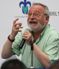 El Doctor Honoris Causa por la UV dictó la conferencia “La pasión por la lectura”, el 15 de abril en la Unidad de Servicios Bibliotecarios y de Información (USBI) del campus Veracruz-Boca del Río, espacio que lució abarrotado.