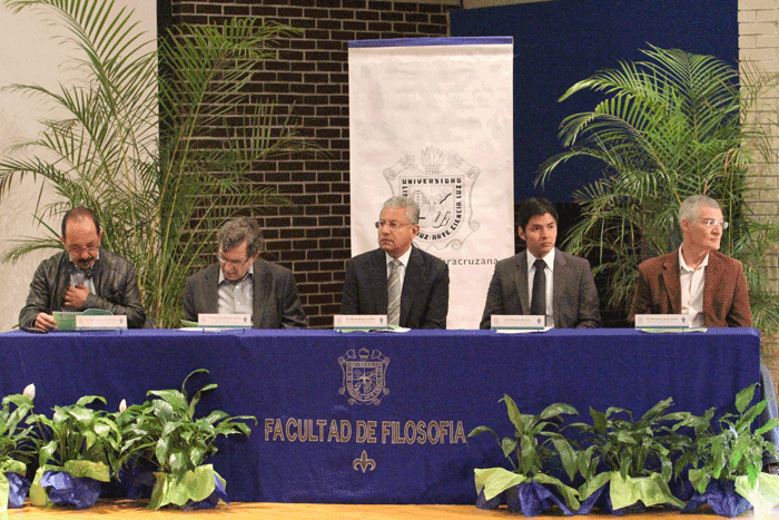 Acompañado del consejero estudiantil Noé Morales Antonio, el Rector agradeció al grupo de alumnos que organizó el encuentro, en el que participaron destacados filósofos, como Juan Carlos Pereda Failache, del Instituto de Investigaciones Filosóficas de la UNAM, a quien calificó como referente fundamental del pensamiento filosófico y que siempre ha mostrado disposición para colaborar con la UV.
