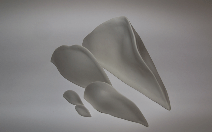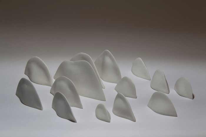Me interesa mucho que el material diga algo, que una parte de lo que estoy hablando se incluya en la pieza.” Zavala señaló que Larvas está compuesta por una serie de pequeñas esculturas blancas en porcelana y una negra que contrasta con el resto.
