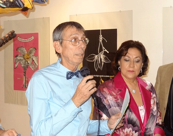 “Por allí andan Javier Puchetta, Per Anderson, Xavier Bermúdez, que es el director de la Bienal Internacional del Cartel en México y que tiene a bien mantener apreciar mi obra”.
