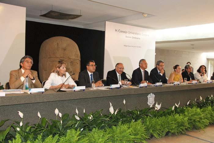 La sesión ordinaria, realizada el 3 de junio, fue presidida por el rector Raúl Arias Lovillo, acompañado de Leticia Rodríguez Audirac, Porfirio Carrillo Castilla y Víctor Aguilar Pizarro, secretarios de la Rectoría, Académico y de Administración y Finanzas, respectivamente; así como de Enrique Córdoba del Valle, abogado general de la institución.