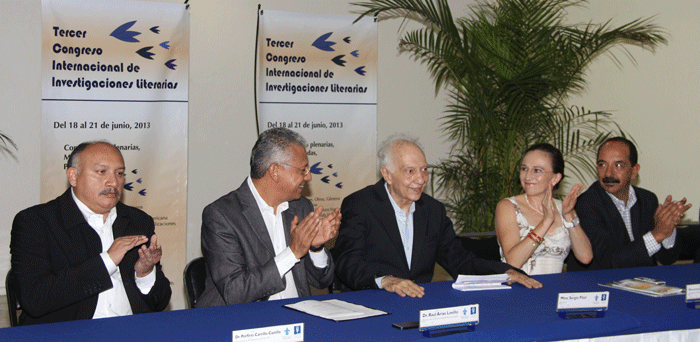 El evento fue presidido por el escritor Premio Cervantes 2005 y Doctor Honoris Causa por esta casa de estudios, Sergio Pitol; así como por el secretario académico, Porfirio Carrillo Castilla; la secretaria de la Rectoría, Leticia Rodríguez Audirac; el director general del Área Académica de Humanidades, Miguel Ángel Casillas Alvarado; la directora del IIL-L, Norma Angélica Cuevas Velasco, y la coordinadora del Congreso, Magda Díaz. También estuvieron presentes los escritores Roberto Culebro, Philippe Ollé Laprune, Mario Bellatin, Juan Villoro y Coral Bracho, quienes enseguida del acto oficial desarrollaron la mesa redonda “80 años de Sergio Pitol.