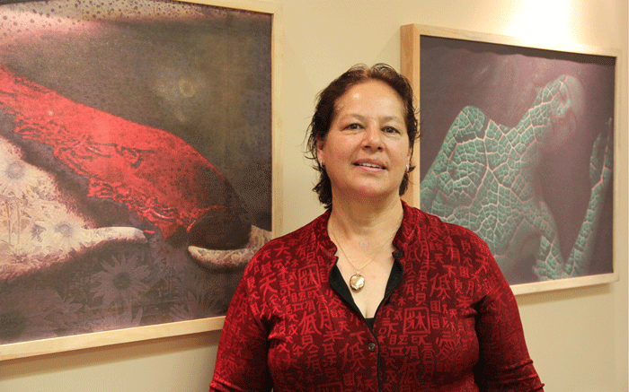 La artista plástica Iris Aburto inauguró el 7 de agosto en la Galería de la Dirección General del Área Académica de Artes de la Universidad Veracruzana (UV) su obra más reciente Homo-natura, se trata de 15 imágenes en las que la investigadora del Instituto de Artes Plásticas (IAP) de esta casa de estudios realizó una mezcla de diversas técnicas digitales y tradicionales para componerlas.