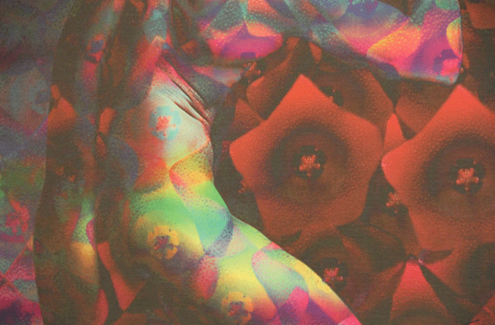 "Lo que aquí muestro son imágenes en las que el ser humano se reviste con la naturaleza, como si se tratase de un tatuaje, body painting u otra piel; para lograr este efecto fue necesario echar mano de siete programas digitales que me sirvieron para lograr las texturas propias de la naturaleza sobre los cuerpos humanos”, destacó Aburto.