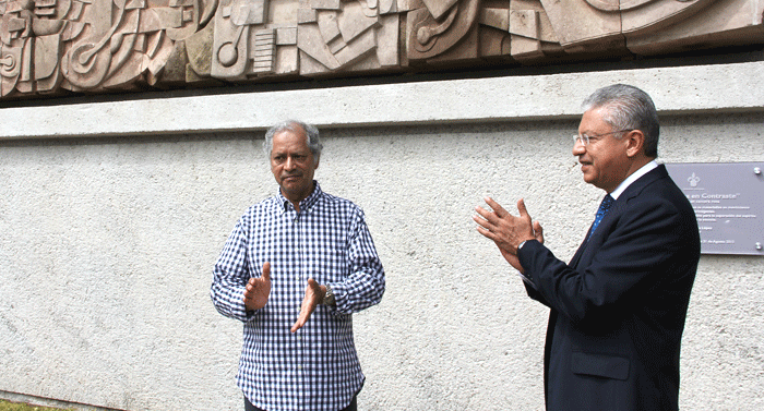 “Este mural será visto y admirado por la comunidad universitaria y será un ícono de nuestra casa de estudios”, expresó. Naturaleza en contraste ostenta en su placa las palabras de su creador: “Ésta es la forma que se crea y que se materializa en movimiento de entrañas primigenias. En donde surge la generación de cambio para la superación del espíritu y la plenitud de la esencia”.