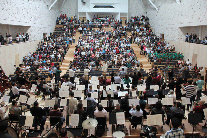 “Para iniciar el trabajo de acústica fue necesario cuestionarnos acerca de las maneras que tienen de comunicarse las orquestas y su público entre sí, la forma en que la orquesta ve a la audiencia y cómo es percibida por ésta.