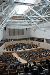 ”La consecuencia es que el diseño de esta sala permite que haya una comunicación perfecta entre el público y los artistas, ya que desde cualquier punto de la sala la audiencia puede verlos y ellos a su público; lo mismo pasa con el sonido pues la acústica permite que cada instrumento se escuche desde cualquier punto de la sala. Otro