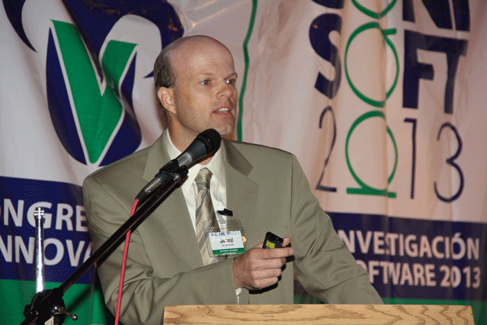 Además es conveniente hacer un análisis de las capacidades y las vocaciones que los actores involucrados tienen, en este caso la industria, la academia y el gobierno”, expresó. A su vez, Contreras Vega hizo un recuento histórico del desarrollo en ingeniería de software. Aseveró que se requiere desarrollo de software libre de defectos dentro de los límites establecidos en tiempo y costo, “y dado que creemos que debemos cumplir conesos requerimientos tenemos el compromiso que motiva a esta Facultad a realizar este evento”.