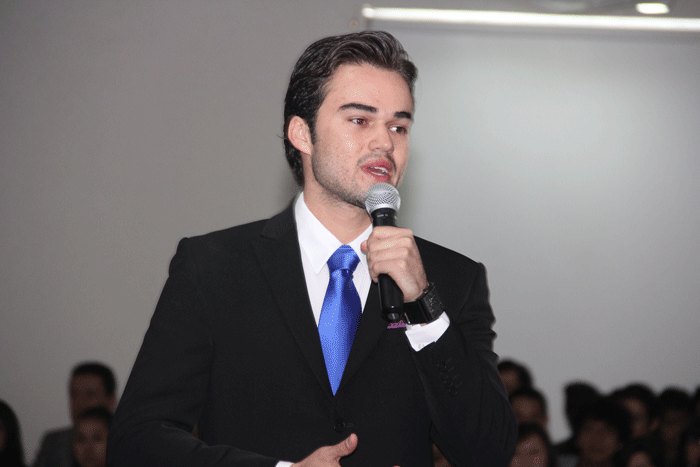 Al dirigirse a los estudiantes reunidos en el Hotel Xalapa, el ponente, originario de Guadalajara, compartió su experiencia como impulsor de negocios y dijo que es más importante crecer como líder, como una persona que sabe tratar a las demás personas con las que trabajará.