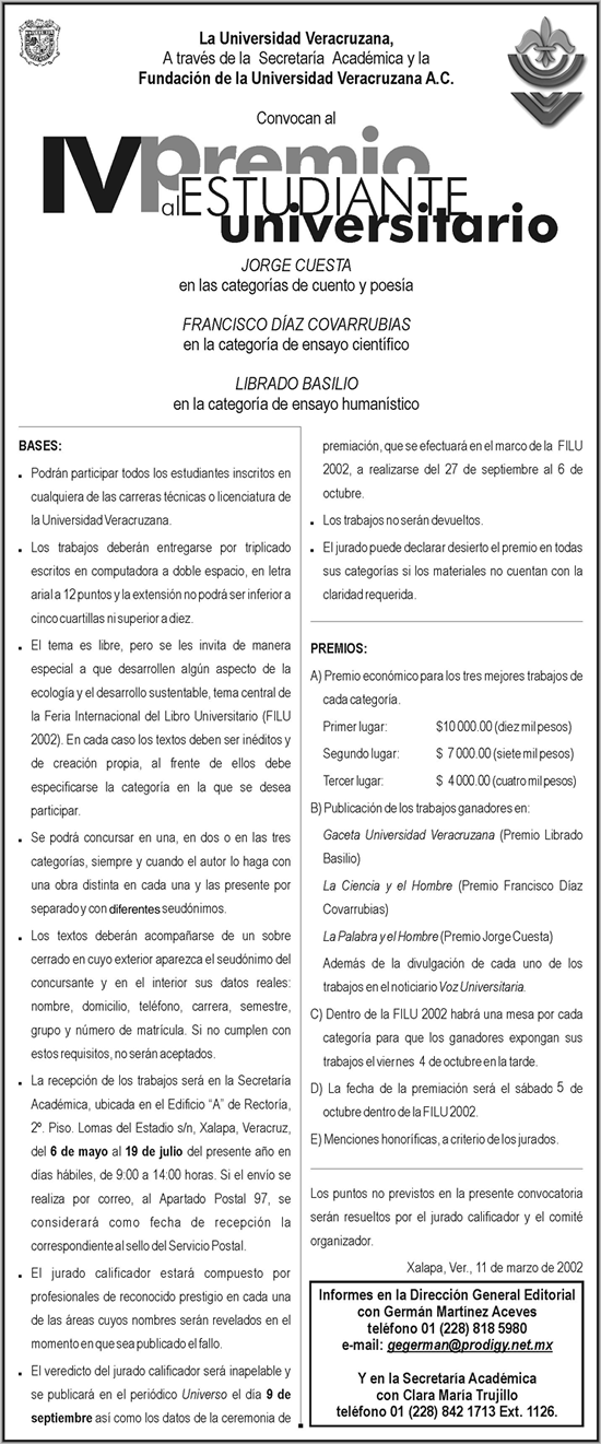 Páginas Centrales Tus Cartas Información General Date Vuelo Arte Universitario Inter Nautas Halcones al Vuelo Contraportada