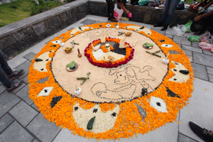 En la exposición destacó un altar tradicional construido con semillas, flores, hojas de maíz y algunos otros elementos característicos del arte y costumbres prehispánicos.