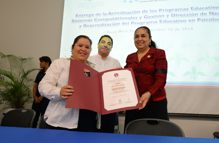 Poza Rica, Ver.- La Universidad Veracruzana registró un nuevo avance en sus indicadores de calidad cuando el 10 de noviembre la Facultad de Contaduría de Tuxpan recibió la acreditación nacional de calidad de sus programas en Sistemas Computacionales Administrativos y en Gestión y Dirección de Negocios, y la Facultad de Psicología recibió la reacreditación de su programa de estudios.