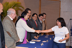de los apoyos: Sergio López Contreras en representación del gobernador del estado; Octavio Ochoa Contreras, secretario de Rectoría; Enrique Levet Gorozpe, secretario general del Fesapauv; Rafael de la Huerta Manjarrez, vicepresidente del Consejo