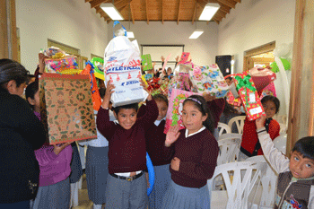 Uno por uno los niños pasaron, y si uno de ellos no escuchaba su nombre, de inmediato todos lo gritaban. Cuando todos tuvieron sus regalos de pronto alguien de entre los presentes dijo “Ya pueden abrirlos”. Pareciera que había iniciado una competencia, sólo se veía que pedacitos de papel de regalo, bolsas e incluso cartón salían volando por doquier, pues