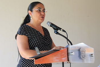 La bienvenida a la Rectora fue en español, nahua (variante de Mecayapan), popoluca y zoque. Enseguida, Florentino Cruz realizó una semblanza de la UVI Las Selvas, a 10 años de su fundación: “El 26 de septiembre de 2005 se estableció la UVI Las Selvas, en el ex albergue del Instituto Nacional Indigenista.
