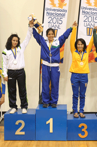 En la categoría de más de 78 kilogramos, Ana Brenda Navarro Rizo se colgó la medalla de plata, tras caer en la final ante Sandra Zavala, de la Universidad Autónoma de Chihuahua. |