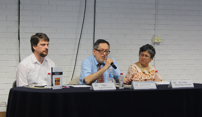 En la plática también intervino Esther Hernández Palacios, directora general de Difusión Cultural. Los tres presentaron los libros Ensayo sobre Carlos Fuentes, editado por la UV, y César Vallejo.