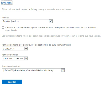 Cuando inicies sesión por primera vez, selecciona el idioma y la zona horaria.