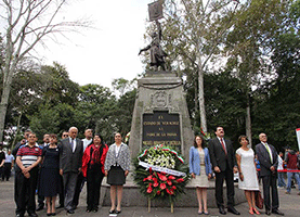la institución, así como académicos, investigadores y estudiantes, rindieron, juntos, guardia de honor ante el monumento a Miguel Hidalgo y Costilla. |