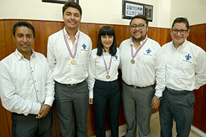 Esther Reyes López, Carlos Miguel Cañedo González y Arturo Ramírez Madrid, estudiantes de la Facultad de Química Farmacéutica Biológica (QFB) y de Contaduría y Administración, respectivamente, presentaron un ungüento y jabón medicinal a base de plantas nativas del estado de Veracruz, en el Foro Internacional de Ciencia e Ingeniería Categoría Supranivel 2015, realizado en Chile. |