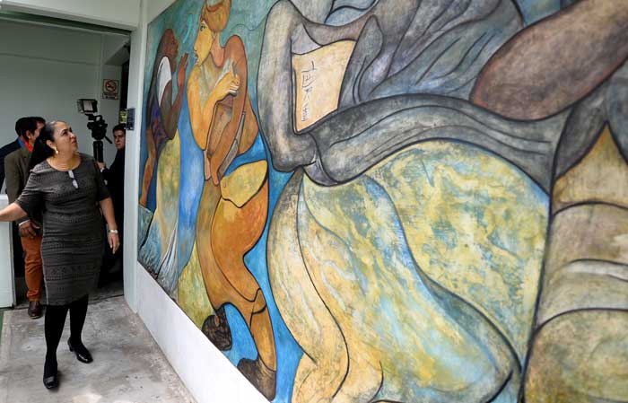 La Rectora admiró el mural Por una humanidad sin fronteras |