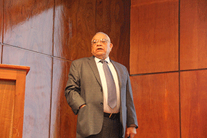 En el Aula Magna "Guillermo I. Ortiz Mayagoitia" de la Facultad, el martes 10 de noviembre, el jurista presentó un esquema general del derecho burocrático mexicano, que está contenido en el Artículo 123 constitucional, apartado B, que