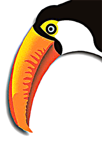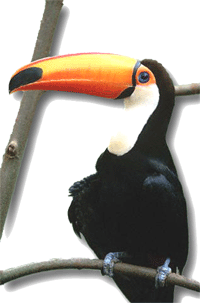su plumaje de llamativos colores y enorme pico coloreado, es una de