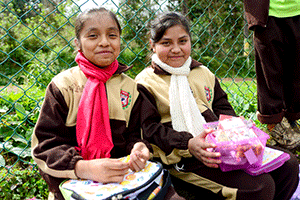 regalos solicitados a los Reyes Magos, gorros para el frío de parte de sus padrinos especiales, los seleccionados de futbol, quienes se los dieron para cubrirse de la neblina habitual en esta época del año.